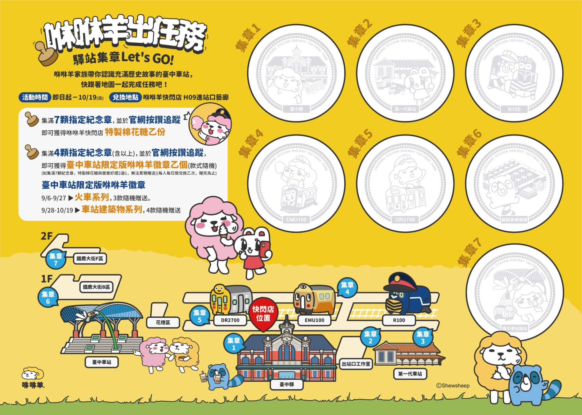 在上述的印章位置,都有咻咻羊與臺中驛鐵道文化園區合作的限定章,快來蒐集吧!